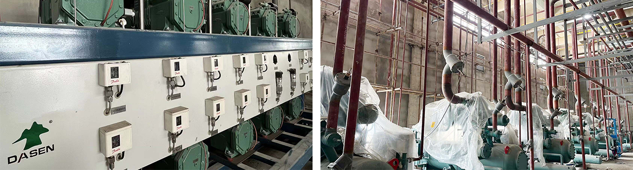建筑面積19843㎡,層高4-18米,存儲噸位20060噸,三臺速凍機配套冷源,采用氨/CO2復疊制冷,R507制冷,末端冷風機,水沖霜。項目位于江蘇省南通市,為綜合性食品加工項目。涵蓋速凍、冷藏、車間空調等生產各個環節工藝用冷。