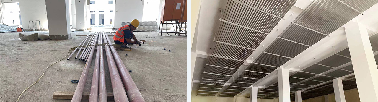 1#2#3#4#四座三層土建冷庫。總容積423176m3(約43萬),總存儲噸位約73039噸(七萬三千噸)冷凍庫采用氟利昂(R507)桶泵供液制冷系統:穿堂采用氟利昂(R507)直接膨脹供液系統。末端采用冷風機,冷藏間采用熱氣融霜;冷凍間采用手指令自動熱氣融霜十人工掃霜。穿堂采用自然融霜。